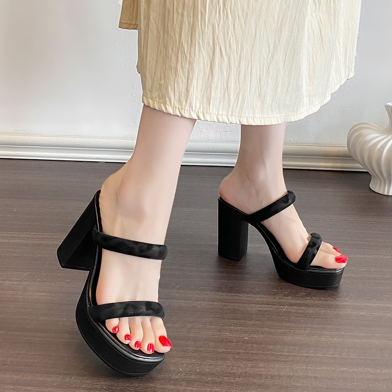 2025 新しい夏の女性のためのハイヒールスリッパ、スクエアトゥ厚いハイヒール防水プラットフォームファッションデイリーサンダル