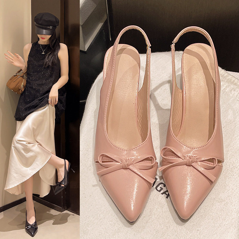 2025年夏新作フレンチハイヒール包頭サンダル蝶結びポインテッドトゥスティレットサンダル
