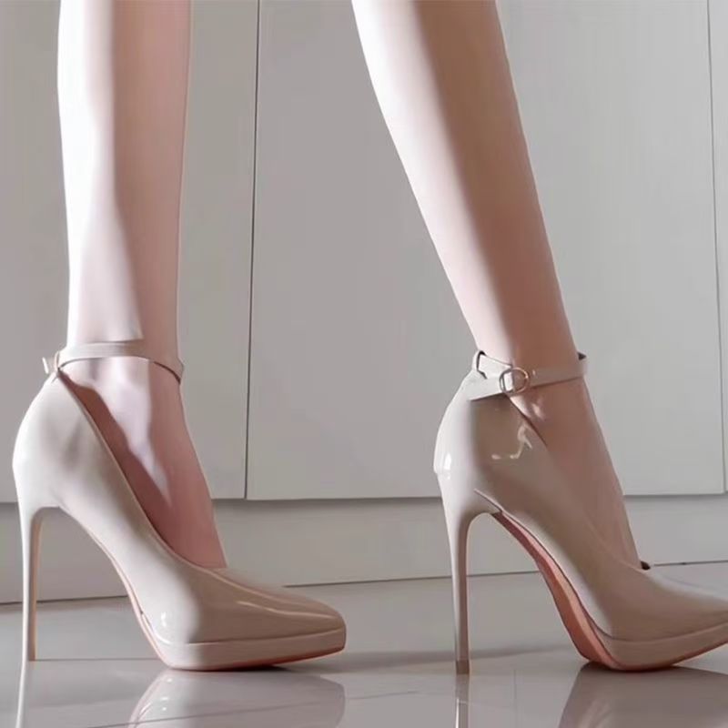 仕事のハイヒールの女性の細いかかと2024春秋の新型の漆の皮の防水台は疲れません。