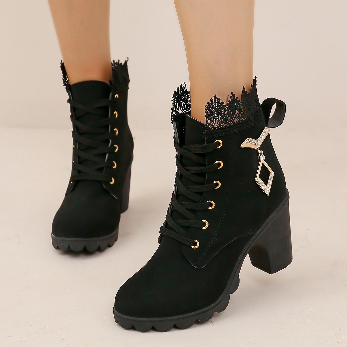 外国貿易の大きいサイズのマーティンの靴の女性の2024秋冬の欧米の新型の太い靴のひもの短い筒のハイヒールの騎士の靴