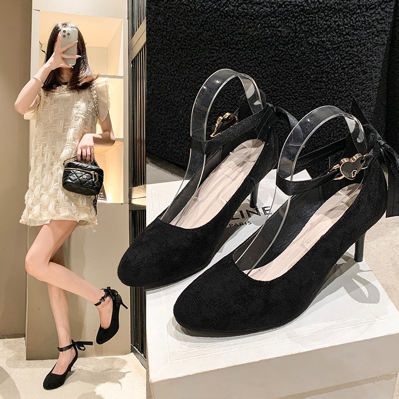 2024春秋の新型クロスバンドの先の細いハイヒールのリボンの蝶結びの気質の愛のロックの靴