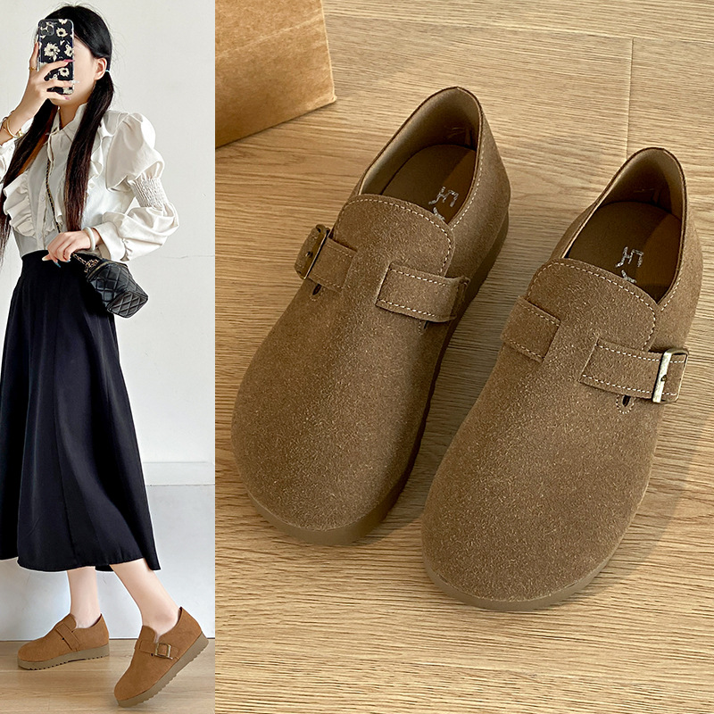 ベーケン靴女2024年秋の新型平底怠け者はレトロな靴博ケン靴の醜い萌え豆靴を踏んだ