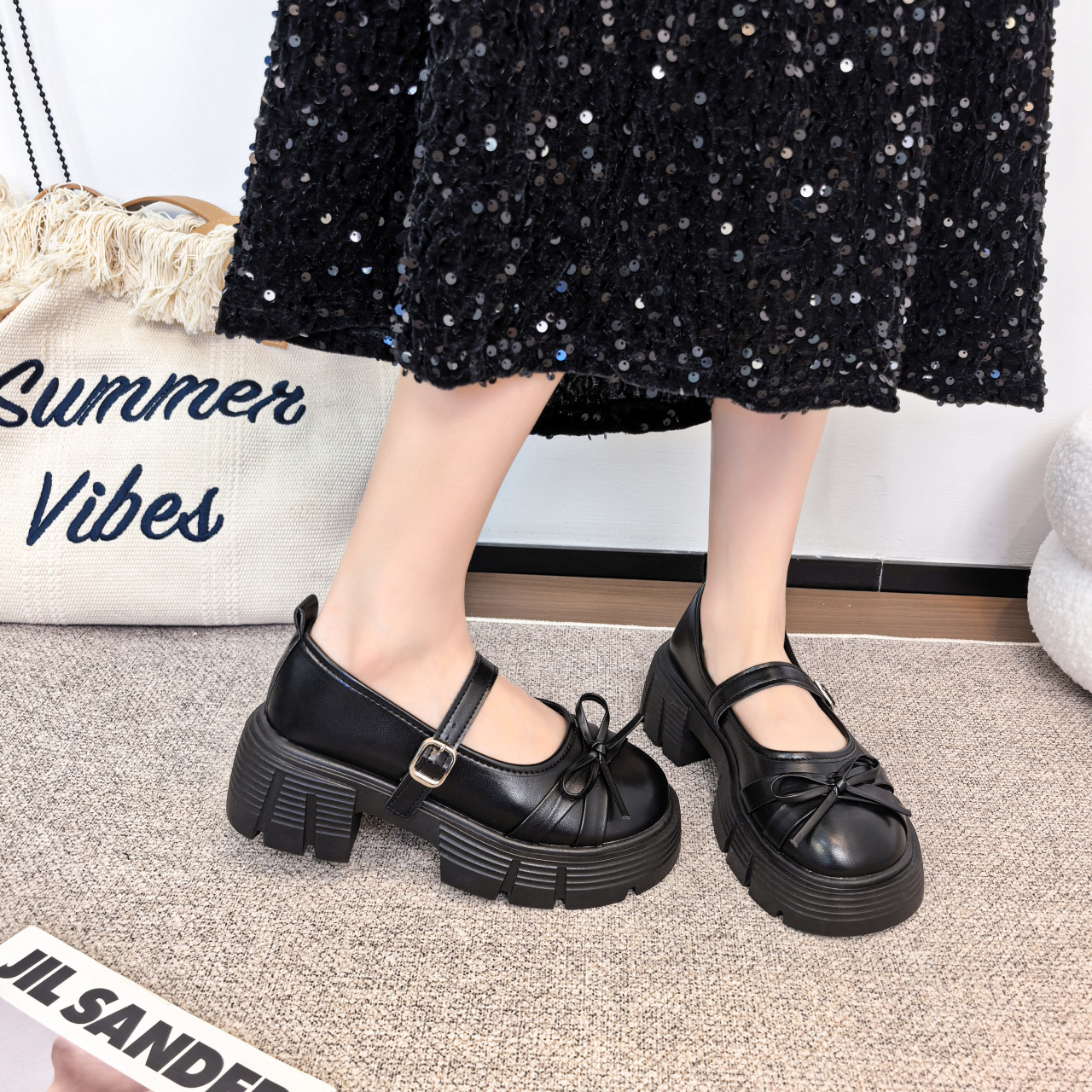 黒の多用途英国スタイルのレトロな厚底小さな革靴 2025 夏の新しいフランスのアウターウェア高められたラウンドトゥの靴