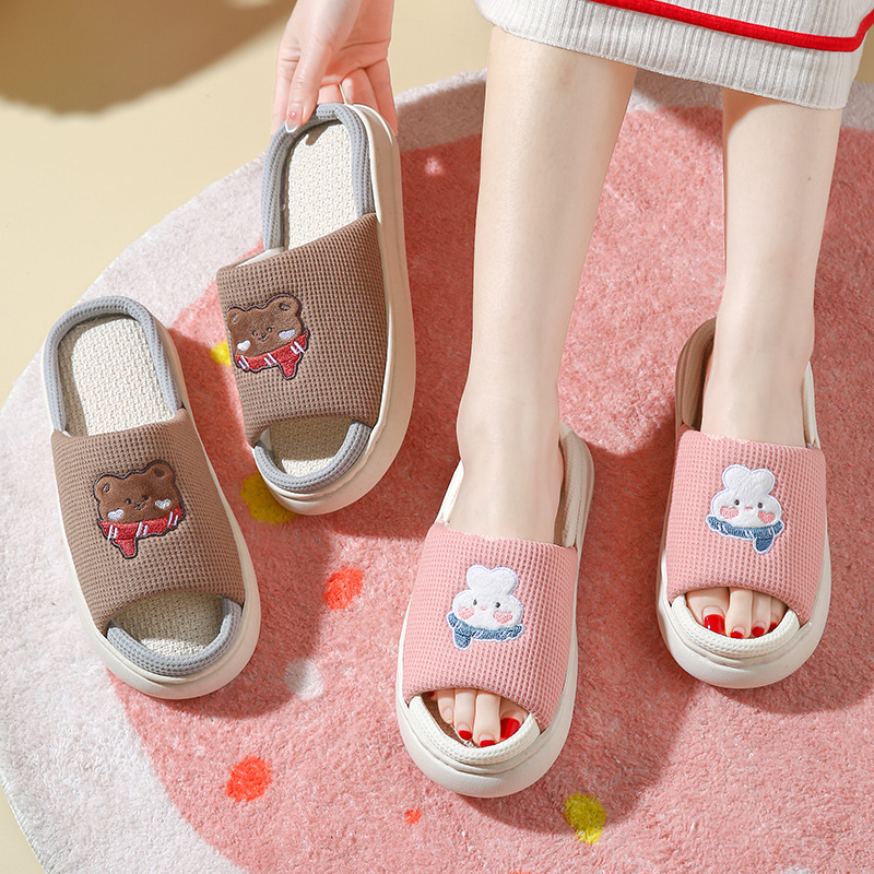 リネンスリッパ女性屋内家庭用春と秋の家庭用滑り止め厚い底カップル四季家綿麻床スリッパ男