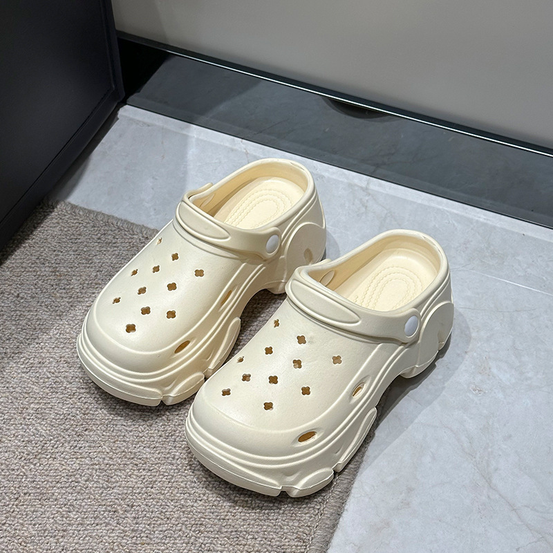 厚い底の穴の靴の女性の夏の外は高くなる2025新型の砂浜の屋外の滑り止めの防臭の包頭の冷たいスリッパの女性を着ます。
