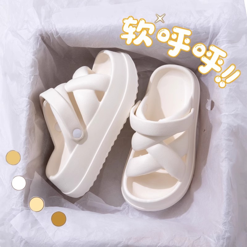 厚い底の高くなるスリッパの女性の夏の2025新型の室内の家の滑り止めは糞感のevaサンダルの女性を踏んで外に着ます。