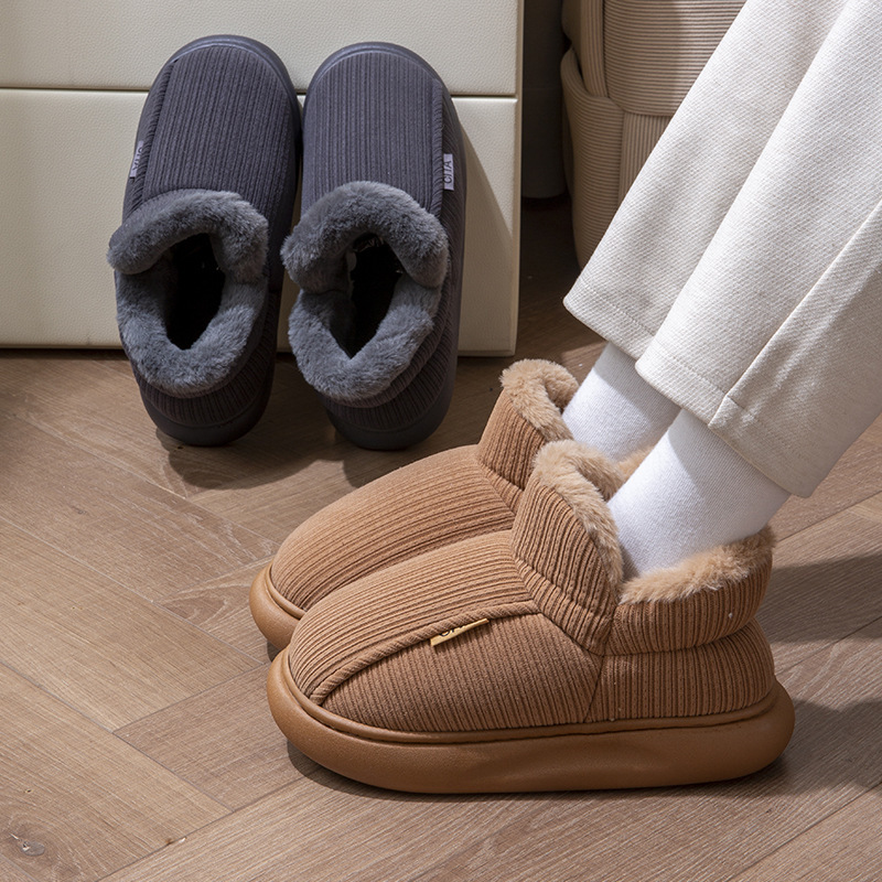 防水綿スリッパの女性は冬に全包と2024の新しい家庭室にベルベットをつけて保温して綿靴を履いている男