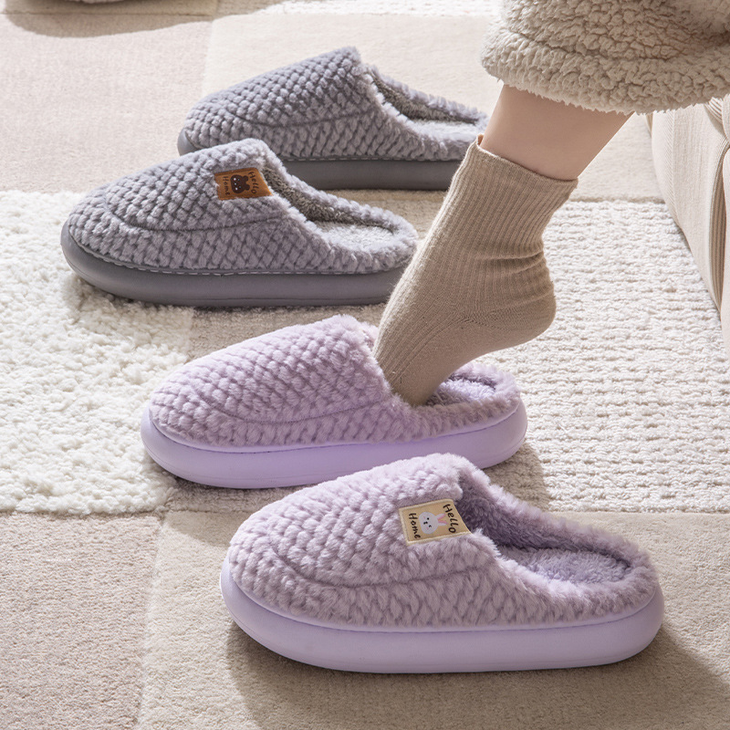 糞感綿スリッパを踏む女性秋冬の新型室内家庭用滑り止め保温カップル家庭用厚い底綿引き男性