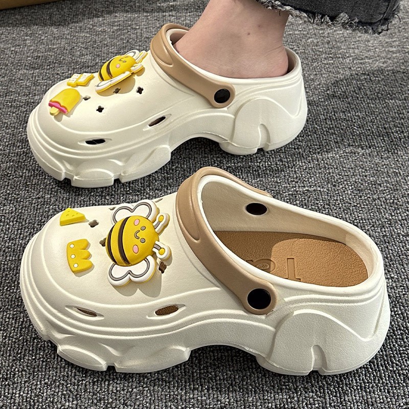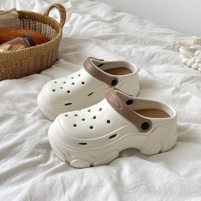 穴の靴の女性のタイプの夏の2024新型の外はサンダルの海辺の砂浜の厚い底を着て高くなって滑り止めの包頭の半スリッパを包みます。