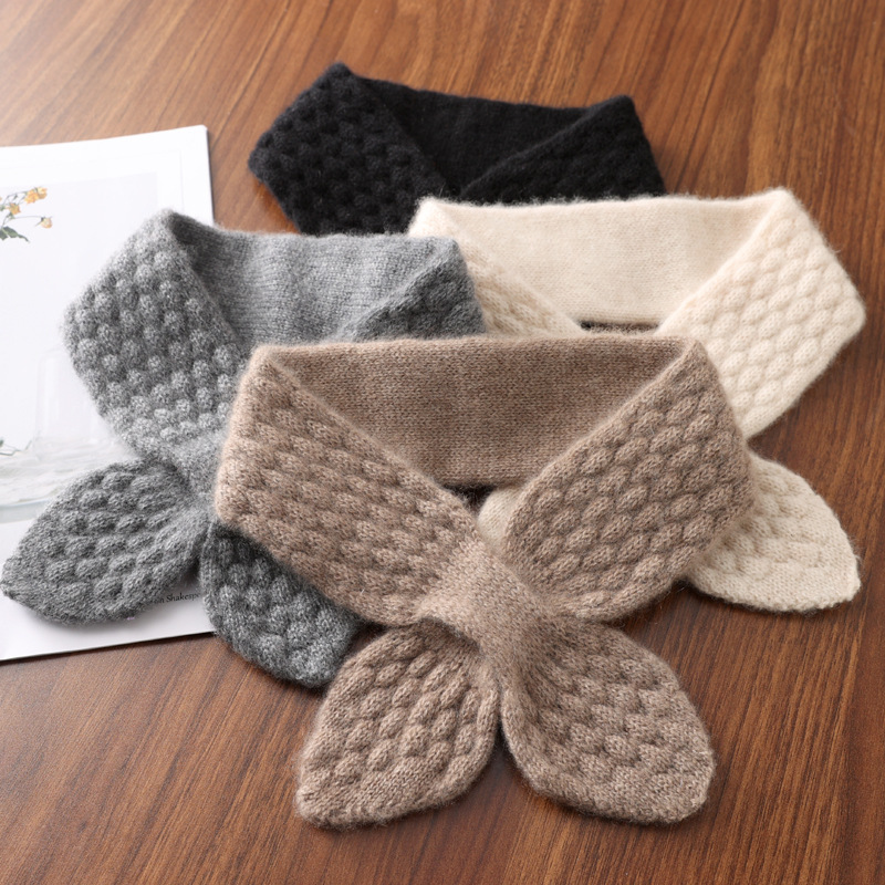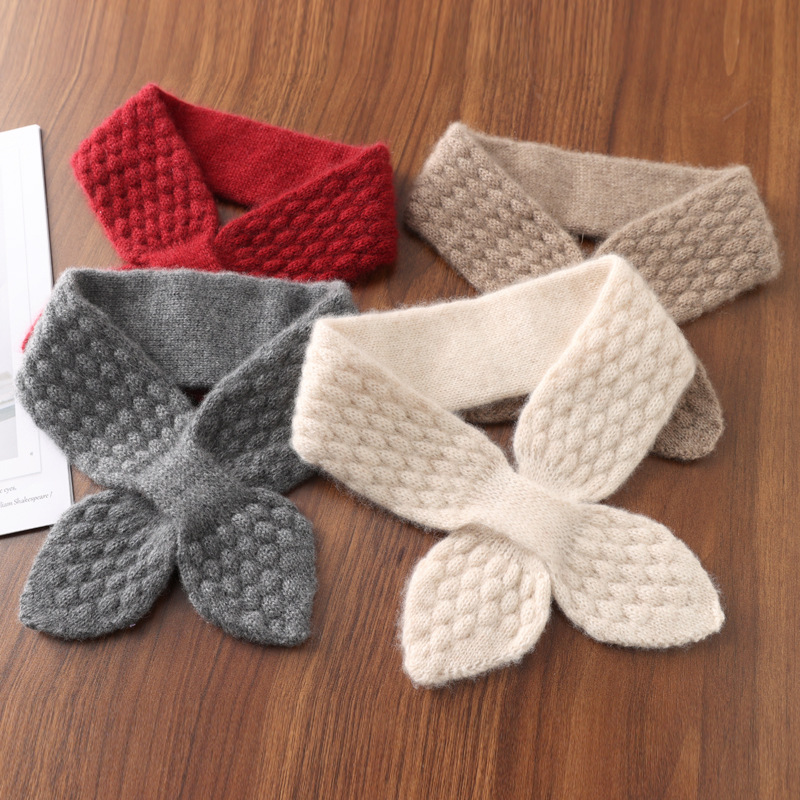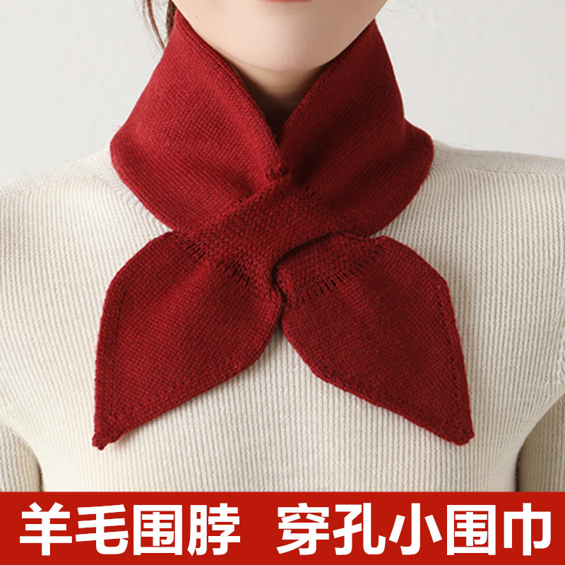 カシミヤ穴あきクロススカーフ、女性用ネックウォーマー、ニットウール糸、暖かいフェイクカラー、両面多用途