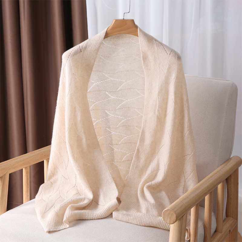 カシミヤアウターショールニットリーフ中空ウールスカーフ女性用薄型ネックプロテクター暖かいスカーフ肩掛け多用途