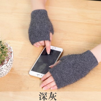 秋冬の手袋の女性の男性のウールの糸のミンクの毛の保温とベルベットの短い金の半分の指の露のタッチパネルの携帯電話の学生はタイプを書きます。