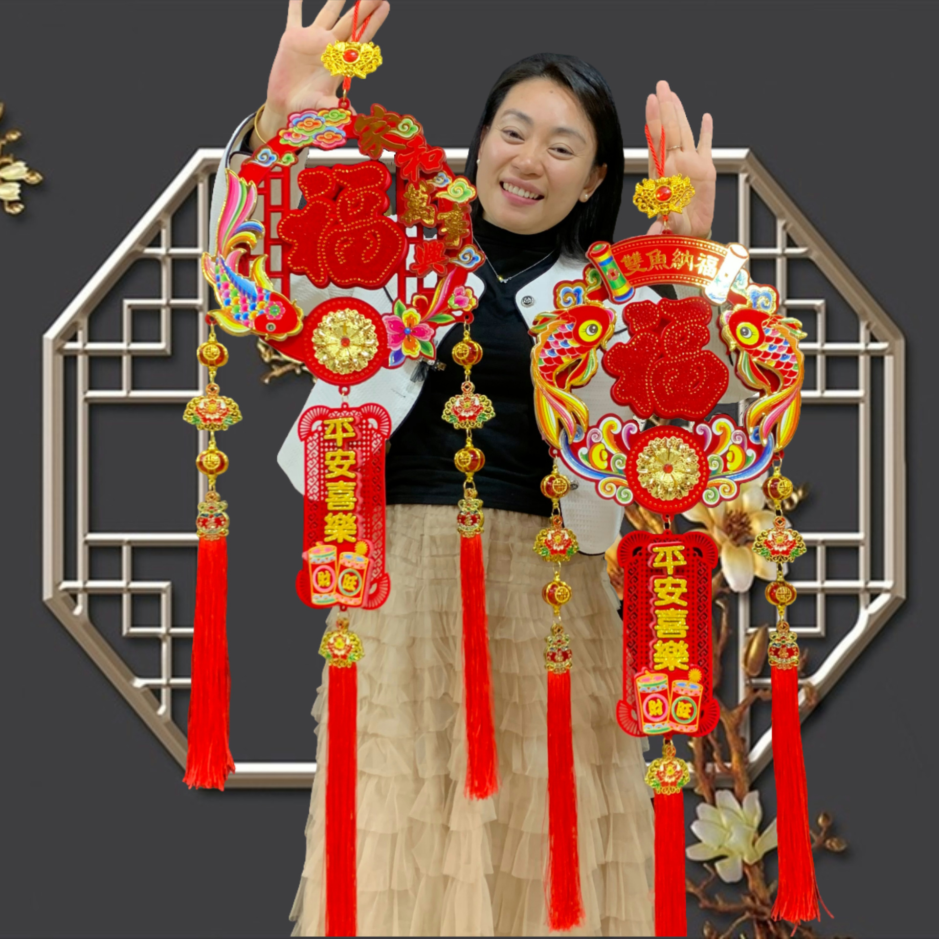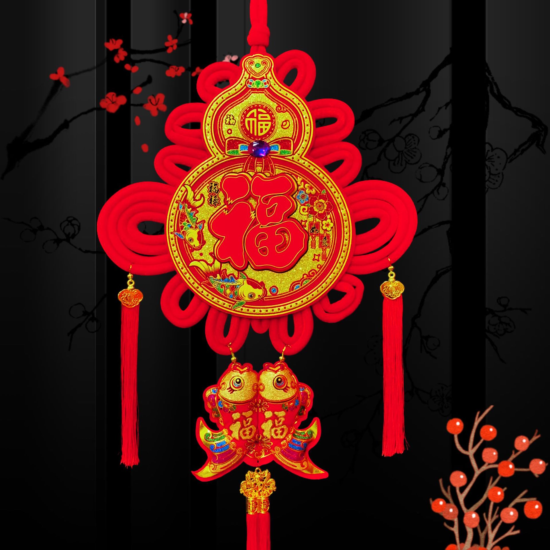 重工紅福熱ドリルストラップ家と万事興と双魚納新居喬迁の喜旧正月飾り