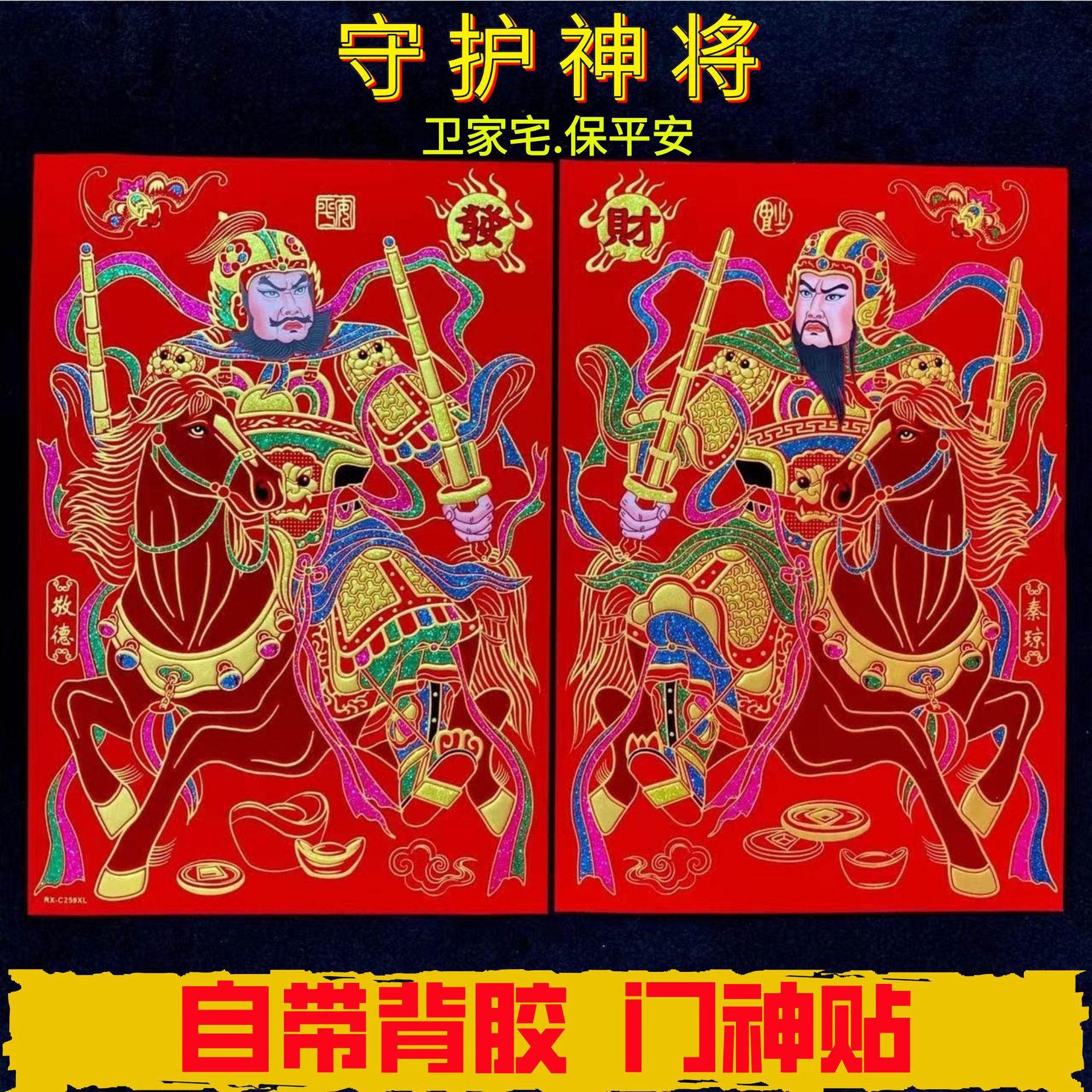 国民的トレンドエスニックスタイルカラーベルベットドア神ドア神ステッカー春祭り新年絵画自己粘着ベルベット装飾卸売新年ドアステッカー