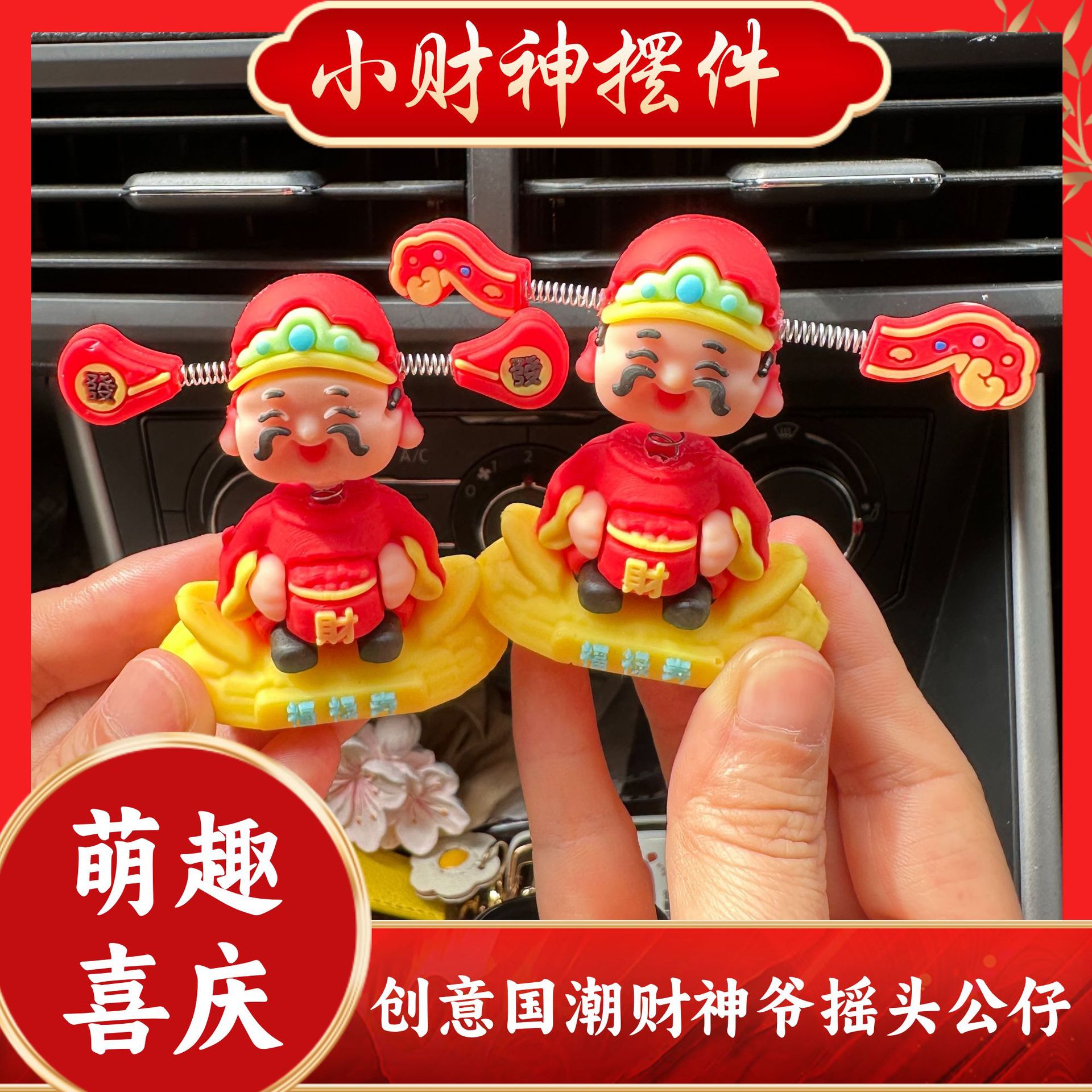 揺れる頭の富の神の車の装飾品、小さくてかわいい新しい車の漫画の富の車のセンターコンソールの装飾フィギュア