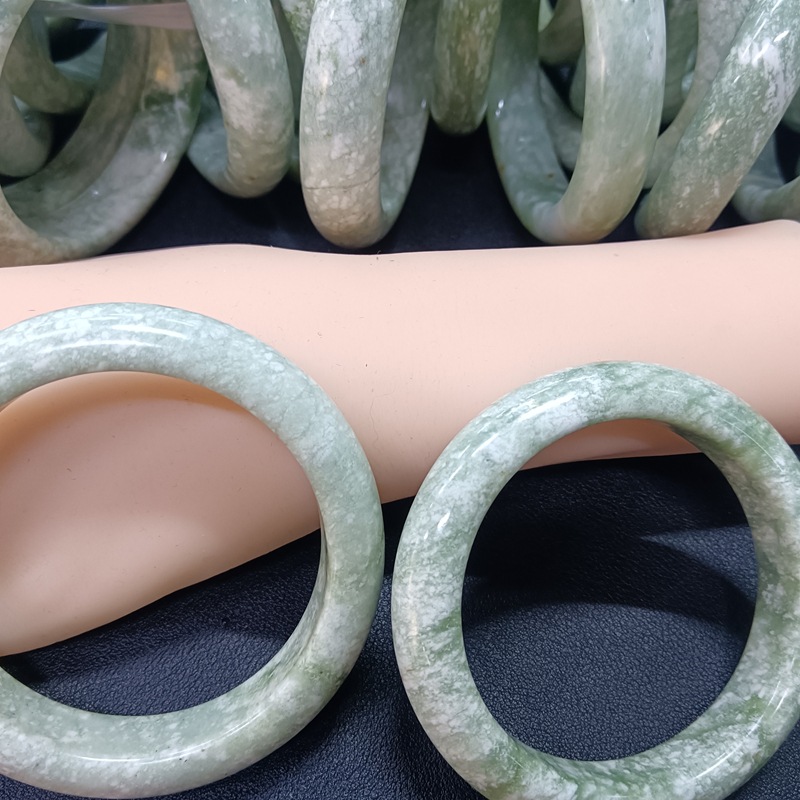 天然玉ブレスレット氷透蛍光水墨高品玉腕輪花火境地氷透大量現物実物撮影