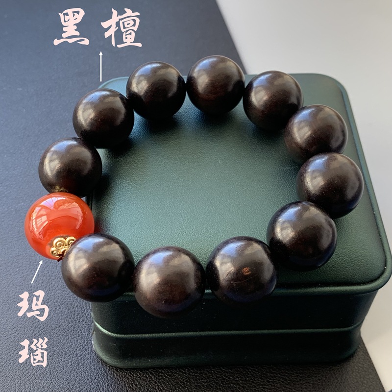 天然の黒檀のブレスレットの手串19mmは赤い瑪瑙のトップビーズの新型を組み合わせて生放送します。