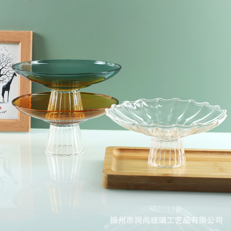 北欧の軽い豪華な高い足の縞の水晶のガラスの果物の皿の家庭用の客間のお茶のいくつかの乾燥している果物の間食は皿を並べて卸売りします。