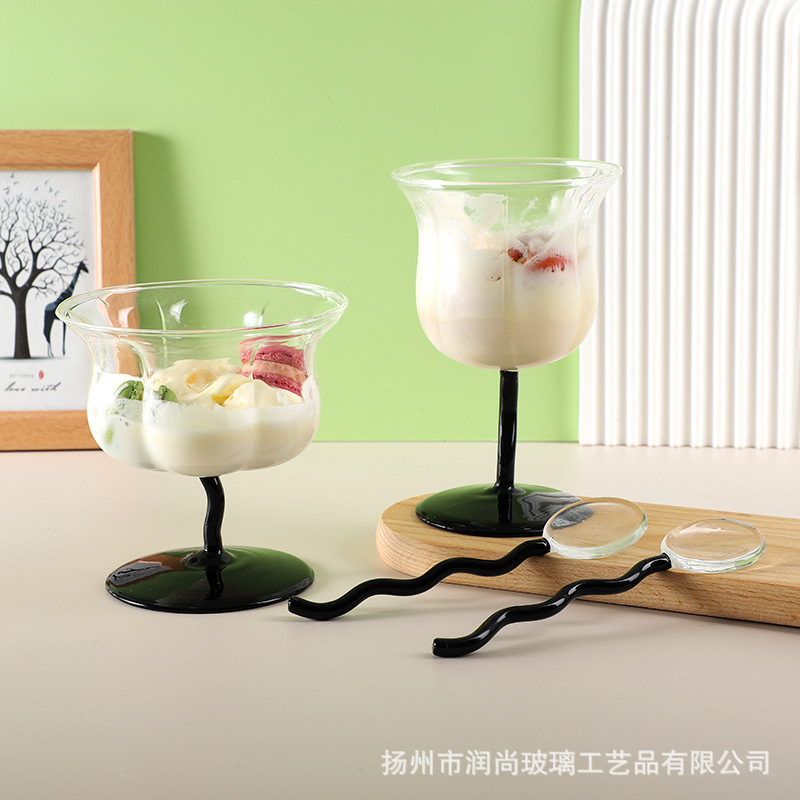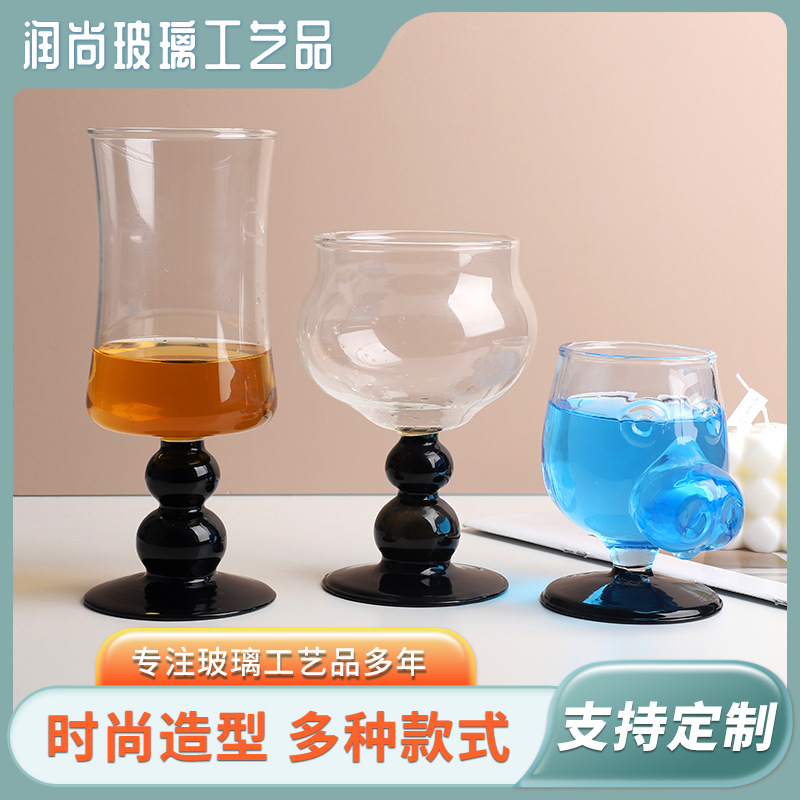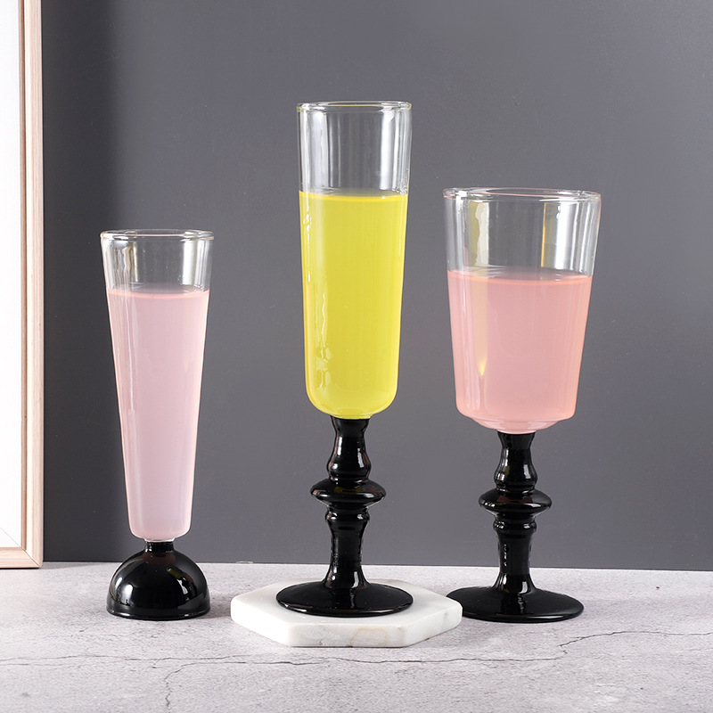 Ins中古ガラス杯黒高足杯パーティーガラス杯創意ネット赤グラス卸売り