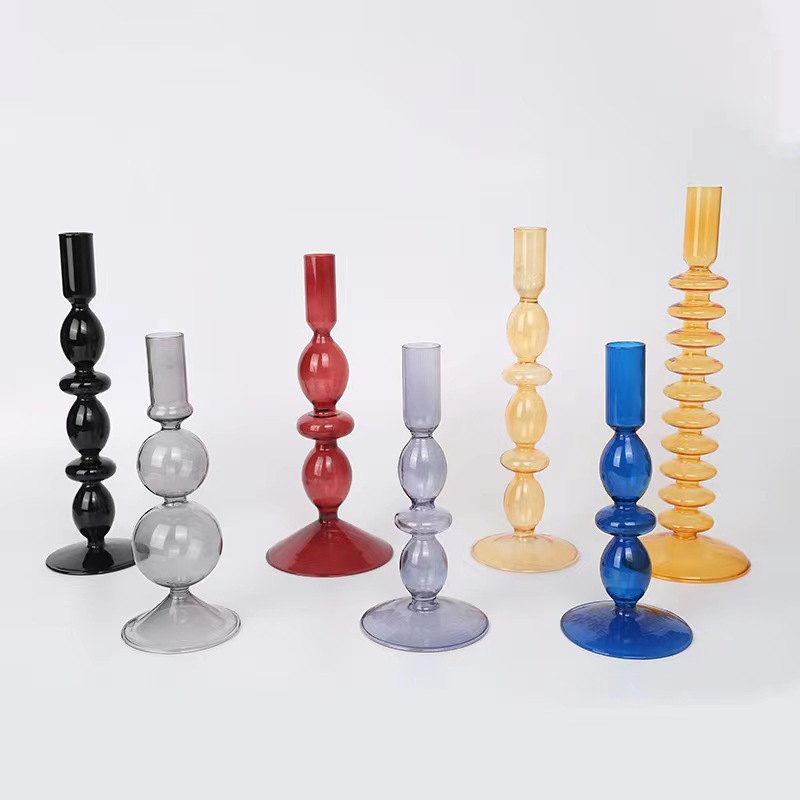 ガラスカラー燭台クリエイティブ北欧キャンドルガラス燭台家庭用食卓ロマンチックキャンドル装飾写真置物