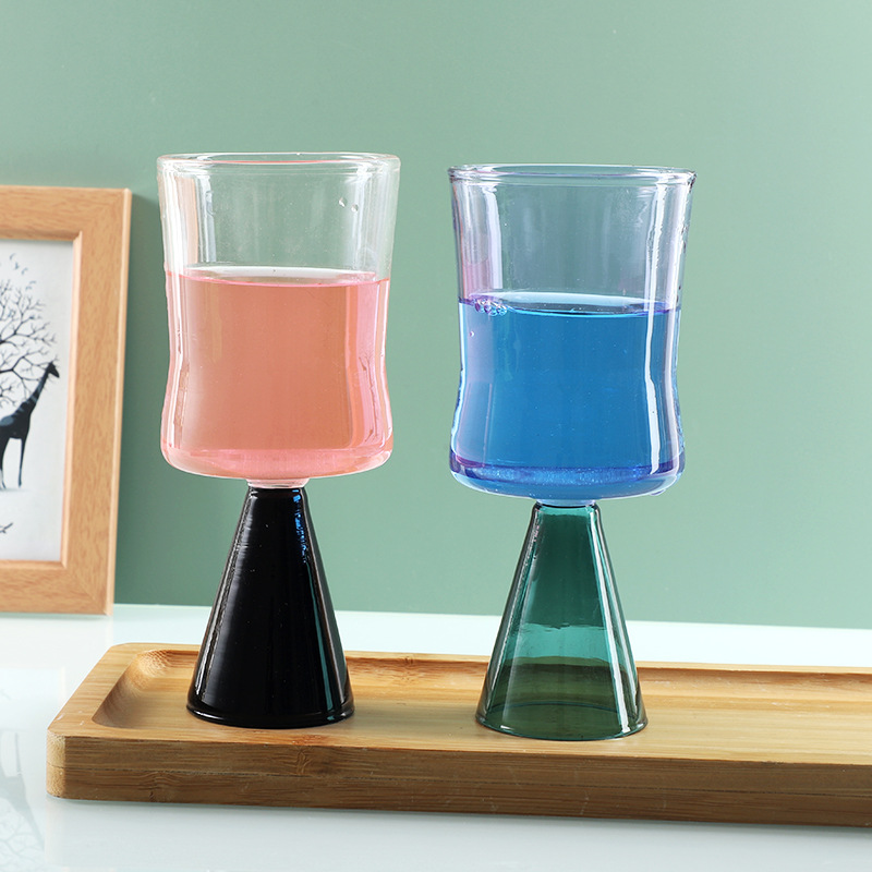 古典風白黒グラデーションワイングラス高ホウ素シリコンガラスワイングラスジュースカップ家庭用バー置物