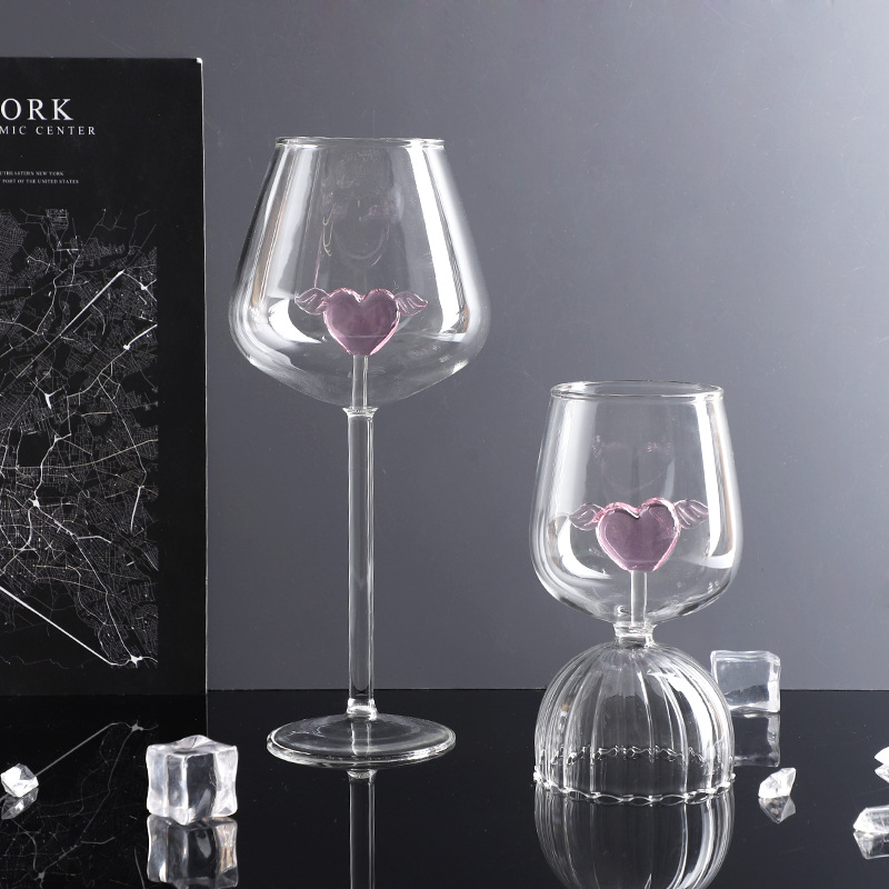 ネット紅ins風創意高ホウ素シリコンガラスワイングラスピンク愛高足杯ワイングラス結婚祝い酒具道