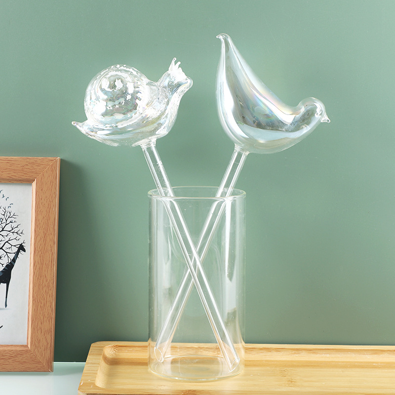 創意的なカタツムリの小鳥の形は花器の多い肉の緑の羅の鉢植えの水浸透器の怠け者のガラスの自動花器に水をやります。