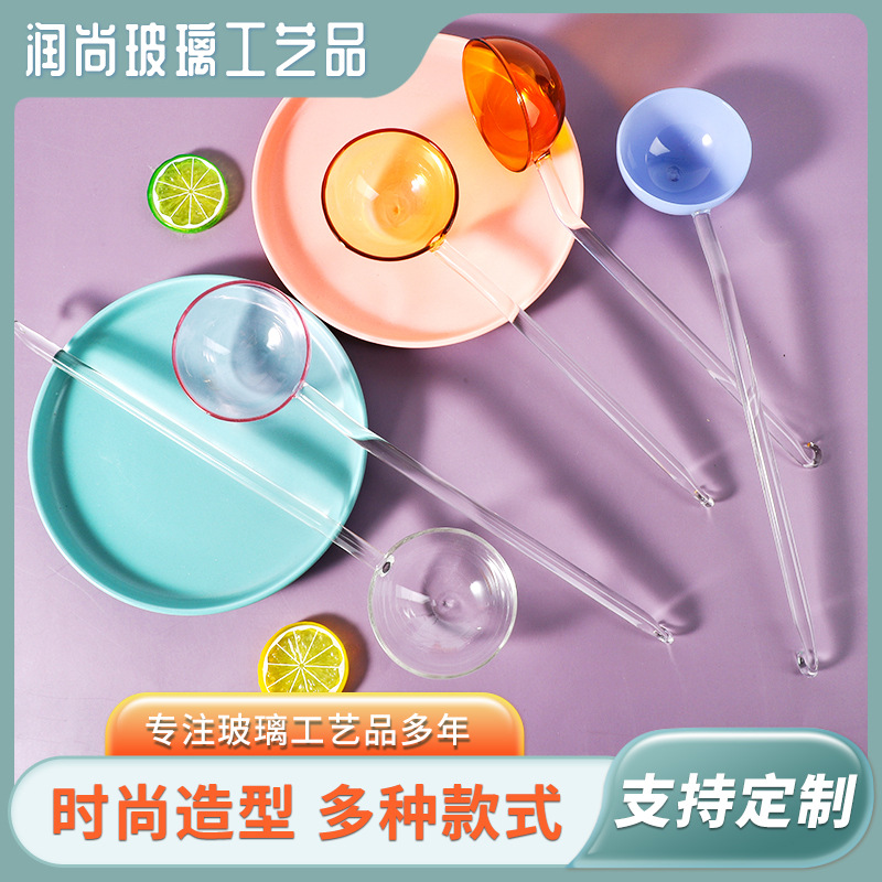 高颜値ガラスカラー長柄スプーン家庭用調理器具吊り下げ式ins風かわいい少女耐高温スプーン