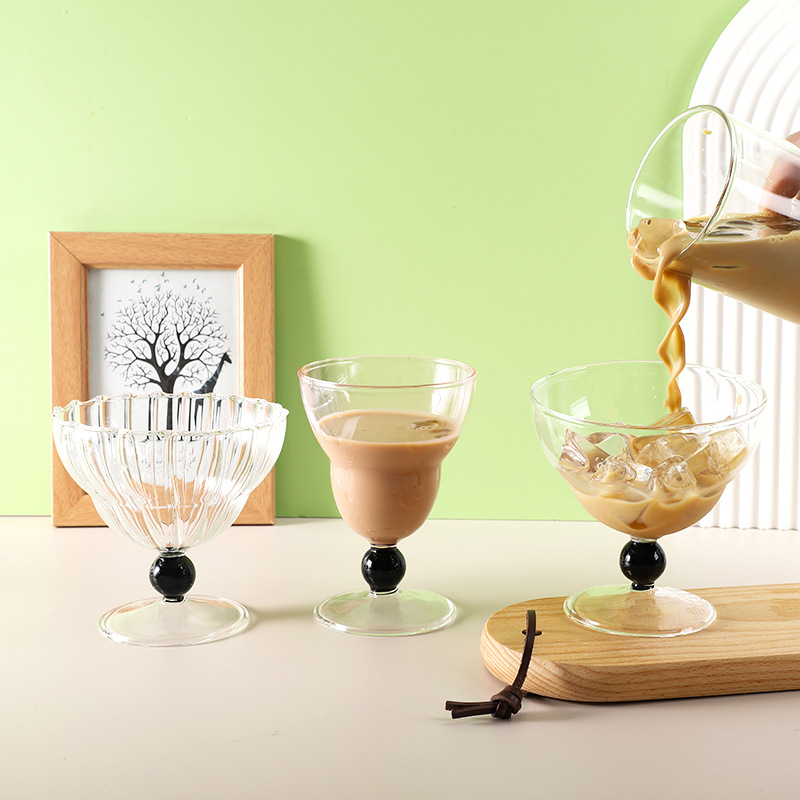 レトロなストライプグラスラテコーヒー高ホウ素シリコングラス家庭用クリエイティブデザートカップジュースグラス