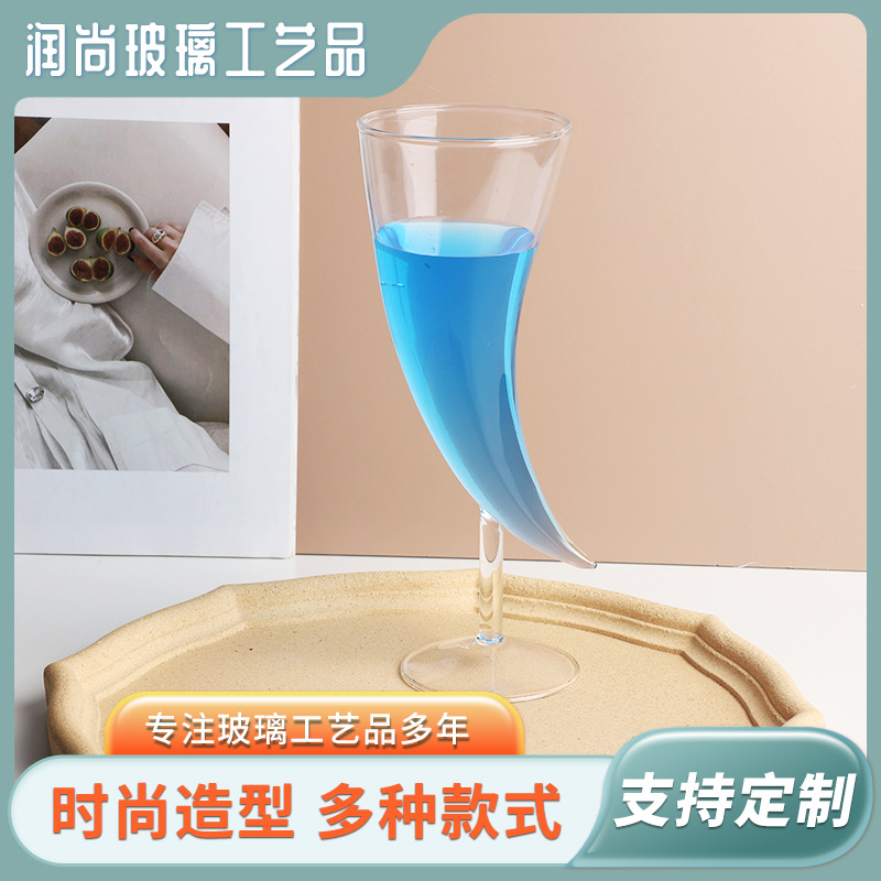 創意的な三日月の形のガラスの杯の個性のバーのスモークのカクテルの高い足の杯のメーカーは卸売りします。