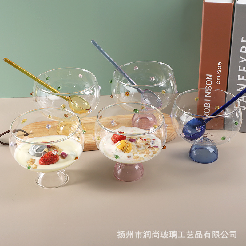 色のガラスの碗の果物のサラダの碗のスープの食器の家庭用の高温に耐える透明な泡の碗のご飯の碗のスプーンのセット
