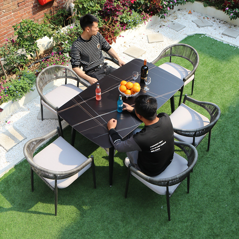 北欧屋外テーブルと椅子庭園露天屋外レジャー藤椅子三点セット露店ネット紅岩板テーブルと椅子の組み合わせ