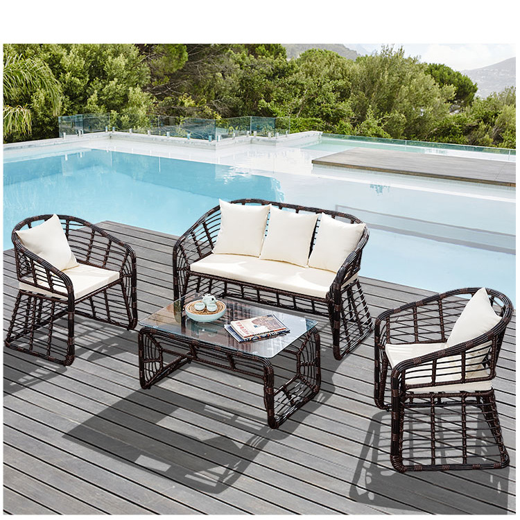 北欧の屋外の藤のソファーの小さいお茶のいくつかの組み合わせの客間はソファーのベランダの藤の椅子の庭のシンプルなレジャーの家具を編みます。
