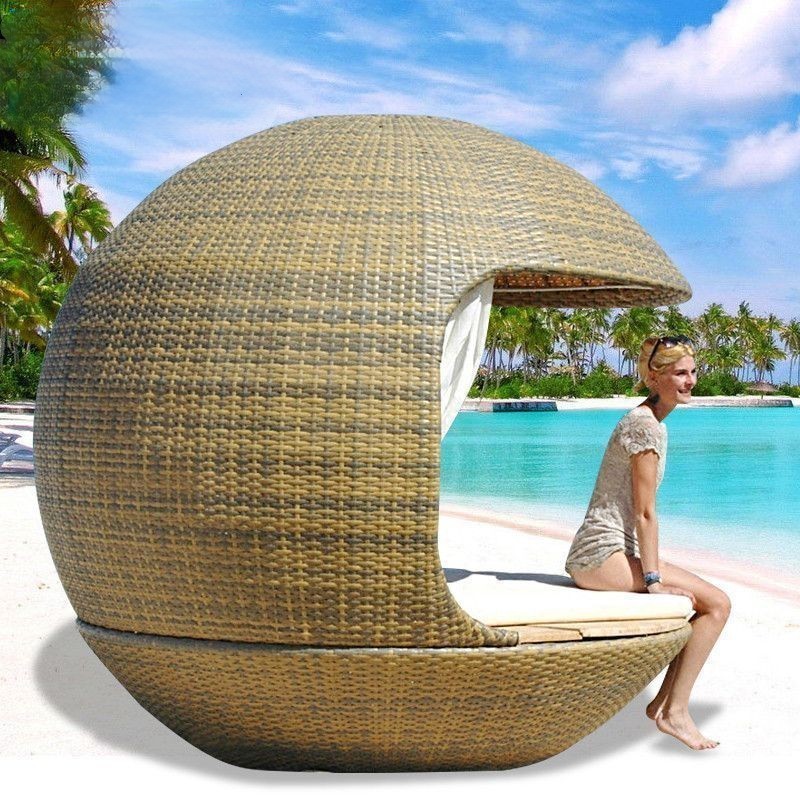 屋外籐編みベッドビーチチェア防水日焼け止めレジャーバルコニー庭サンルーム海辺プールリクライニングチェア
