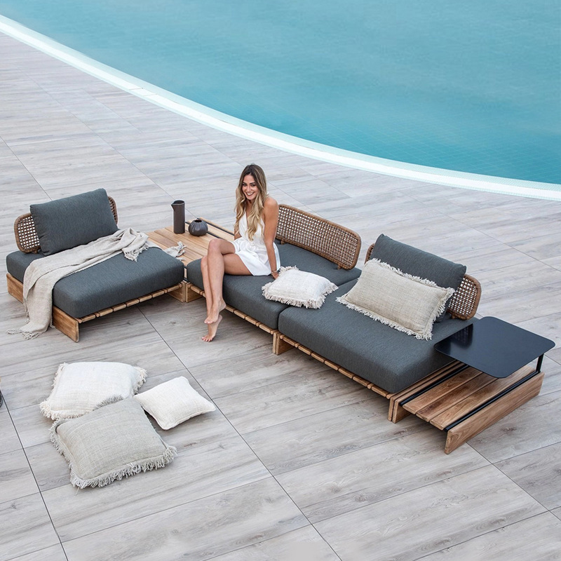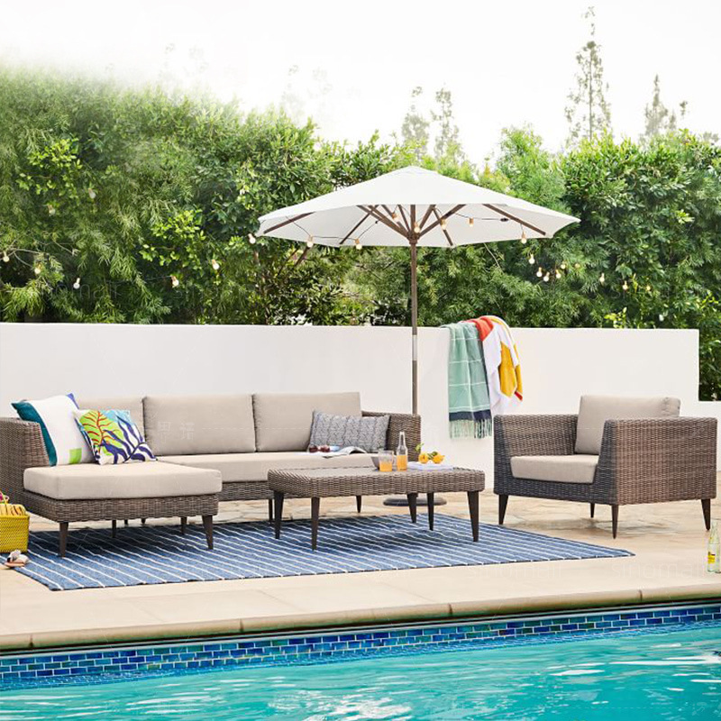 北欧屋外ソファーチーク庭別荘レジャー藤椅子ホテル民宿露店防水日焼け止め藤編家具