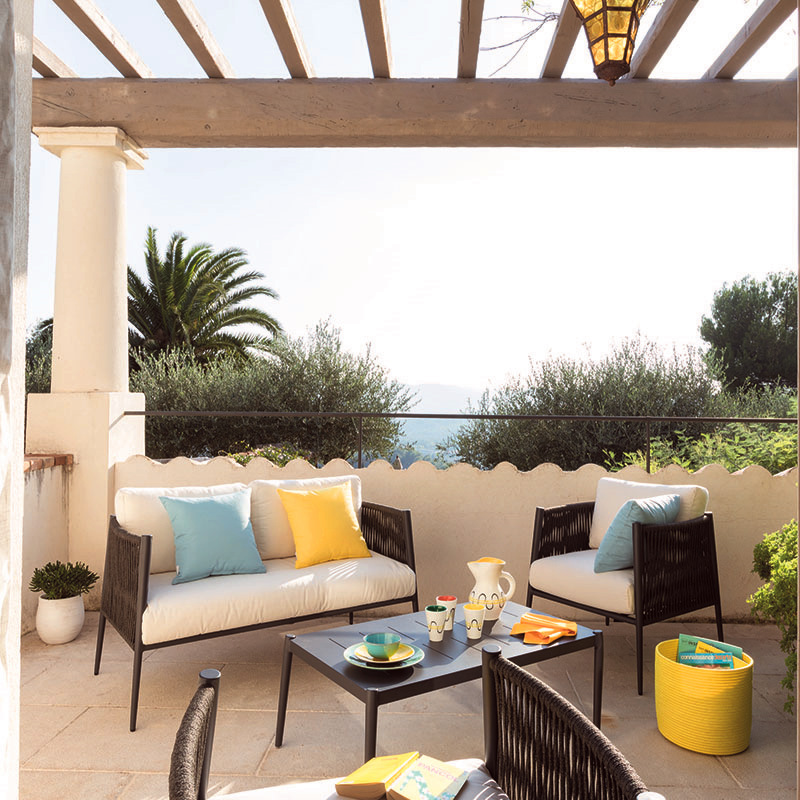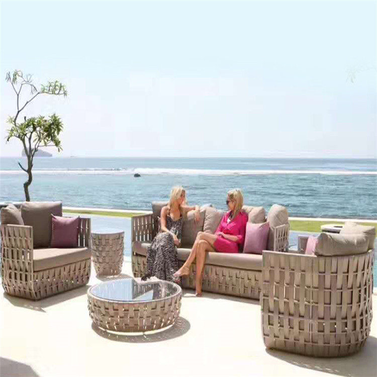 屋外ソファ庭ロープ編みセット北欧テラスバルコニー籐椅子セットサンルーム屋外籐編みソファ