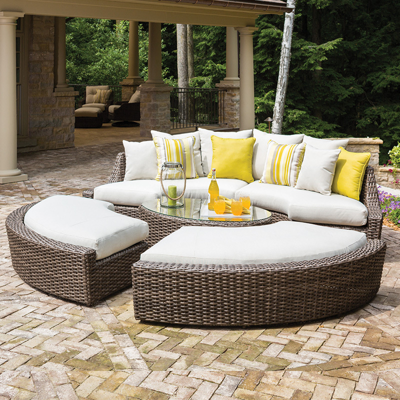 屋外藤編ベッド屋外露天庭園蓬大円ベッドプール付き怠け者ベッドビーチ模造藤ソファーベッド