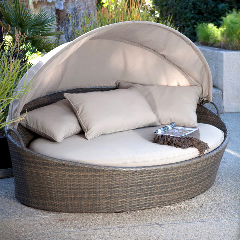 リクライニングチェアラウンドベッドアウトドア家具カジュアルベッド籐椅子ソファベッド籐ベッドビーチ楕円ベッド籐編みラウンドベッドテント付き