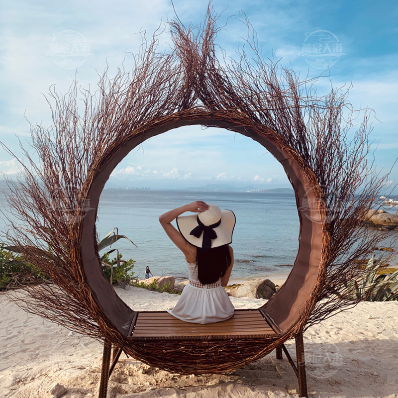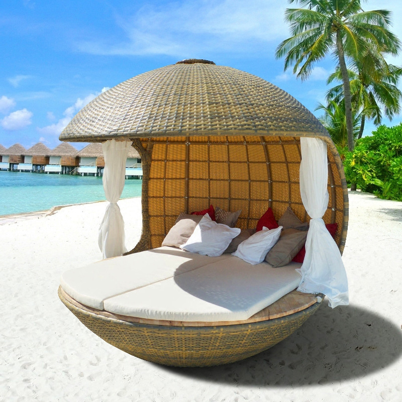 アウトドアレジャー籐編み家具プールビーチベッドクリエイティブ大きいラウンドベッドガーデン庭ラウンドベッド鳥かごデッキチェア屋外