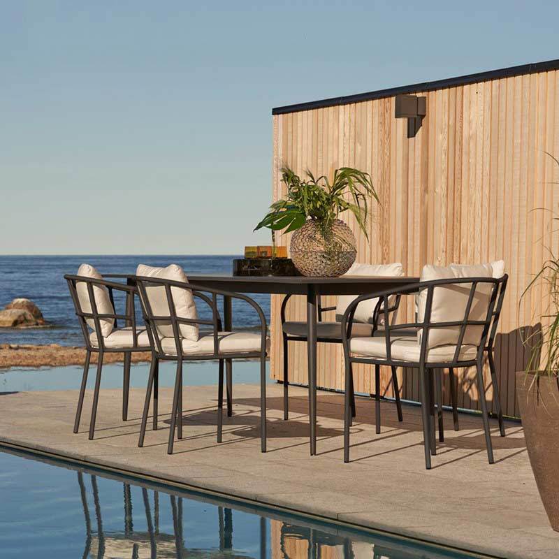 北欧の屋外のテーブルと椅子の庭の別荘の花園は防腐します。