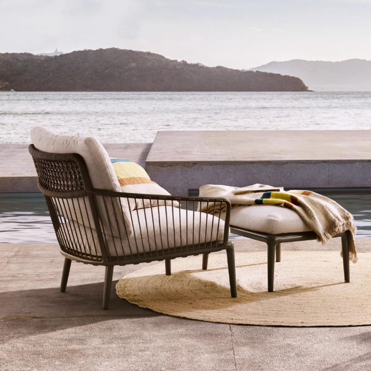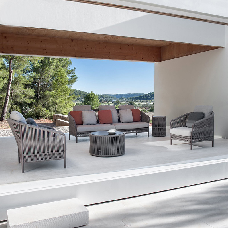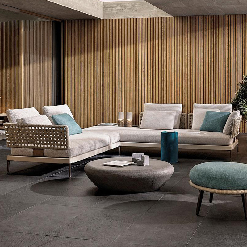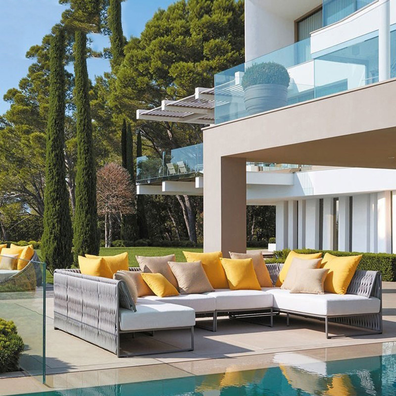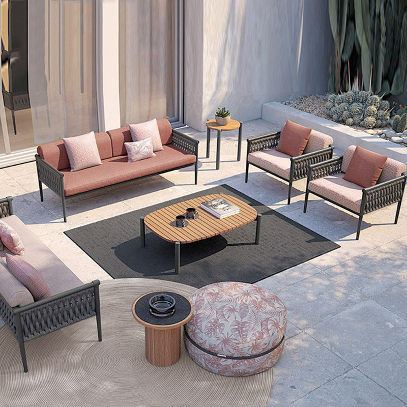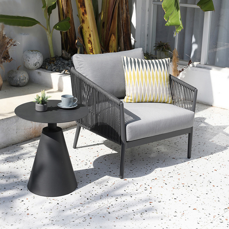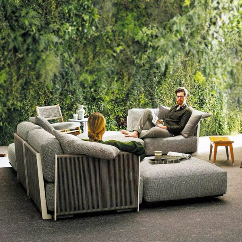 北欧屋外レジャーソファ組み合わせデザイナーホテルガーデンロープ編みシングルダブルサンルームソファ家具