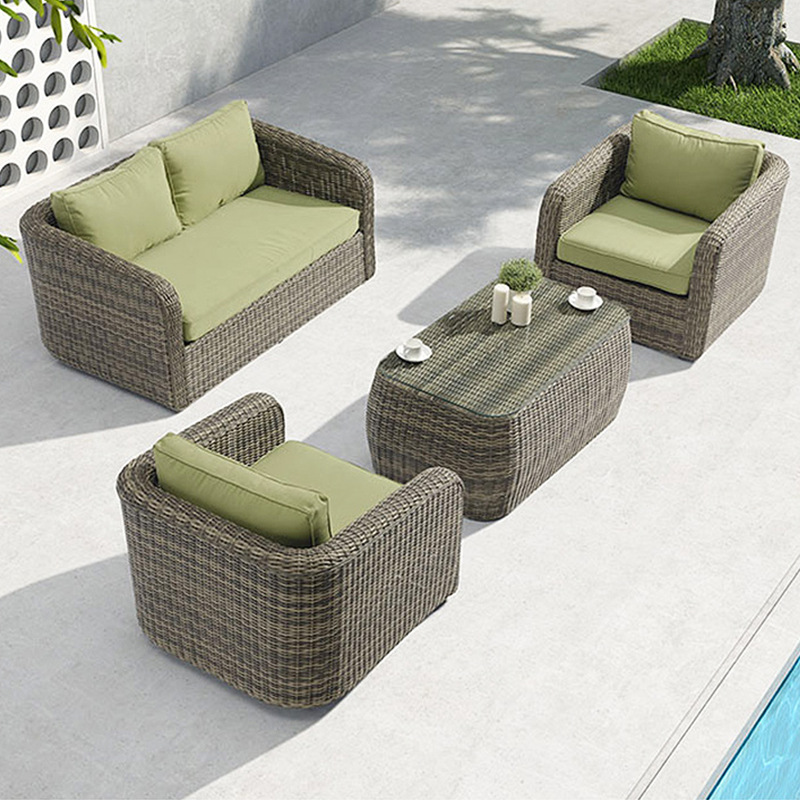 屋外ソファー庭組み合わせ露天レジャー藤椅子露店花園シンプル防水日焼け止めバルコニー藤編みソファー