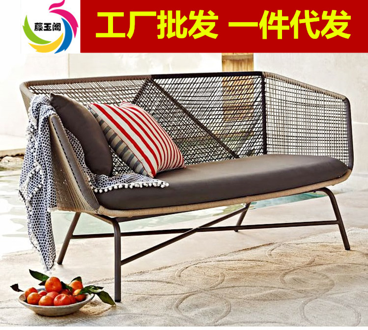 北欧アウトドア家具レジャーベランダ庭ソファ籐ソファセットリビング布ベルト編みテーブル椅子サンルーム