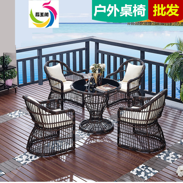 戸外藤椅子茶数三五点セット藤編みテーブルと椅子創意庭園別荘藤椅子バルコニー椅子