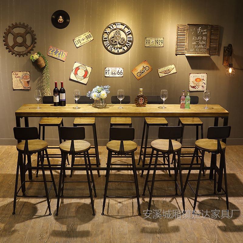 工業風鉄芸実木家庭用バー椅子テーブル現代シンプルバー高足椅子カフェバーテーブル椅子