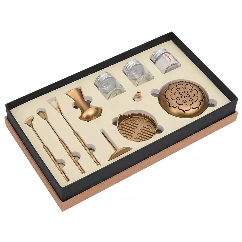 銅の木の香りの卸売りの黄銅の香炉の1炉はセットの家庭のアイデアの香器の茶禅の悟道の薫香の皿の香炉を伴っています。
