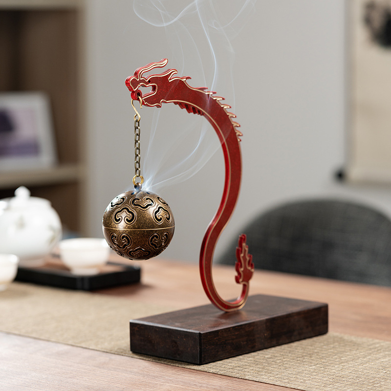 銅木香祥ドラゴンボール吊り炉セット家庭用室内茶卓禅意置物オフィス真鍮吊り炉香炉