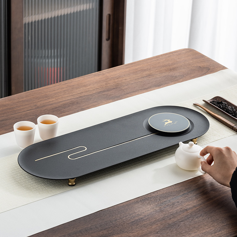 銅アルミニウム結合乾湿泡茶皿家庭用トレー現代軽贅沢小型セット工夫貯水排水式