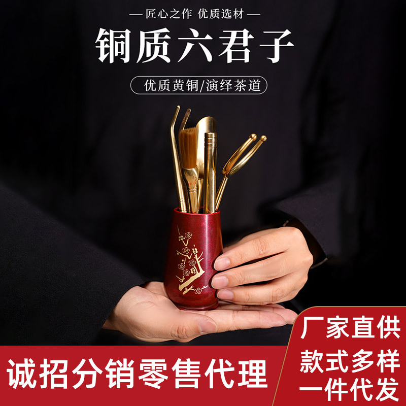 銅の木の香の純粋な銅の茶道の6君子のセットのお茶はお茶を挟みます。