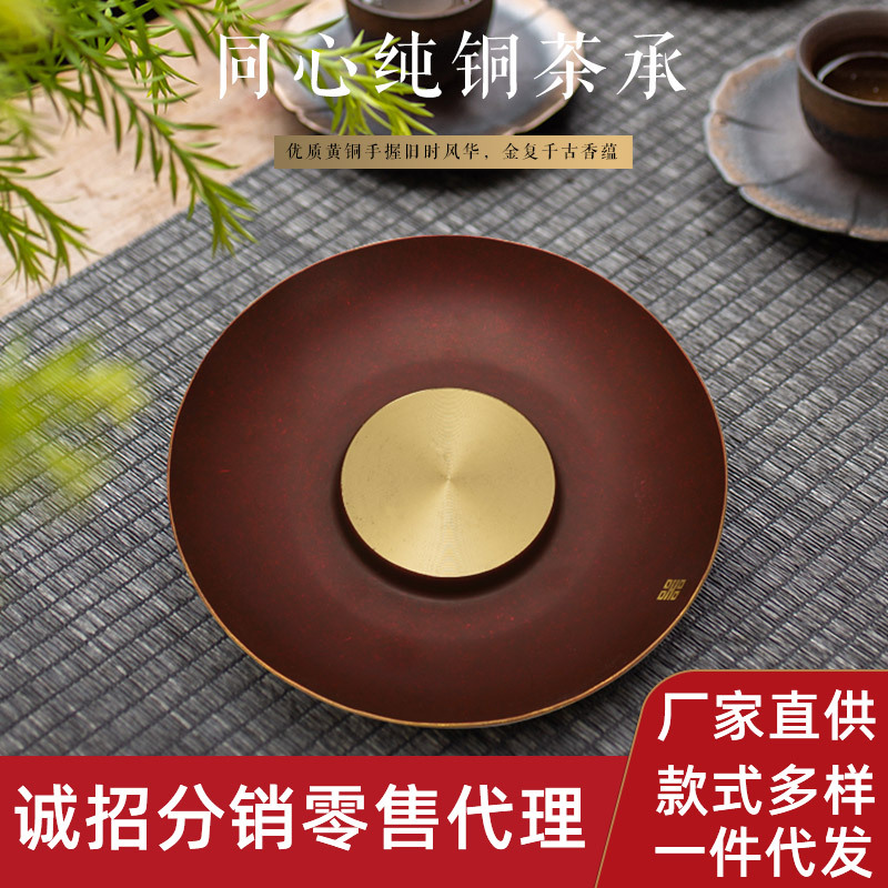 銅の木の香の純粋な銅の泡の皿のお茶台の家庭用の小さいお茶の皿の工夫の茶器の皿の大容量の丸い型は簡単です。